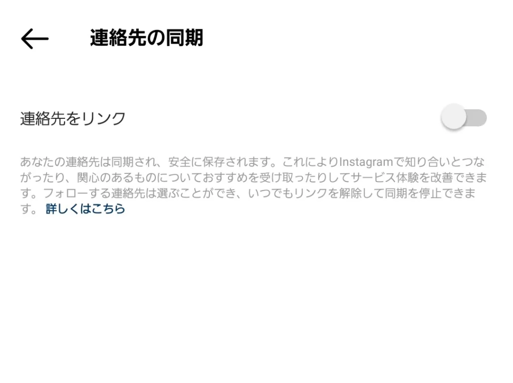 この「連絡先をリンク」がオンになっているとスマホ内の連絡先をInstagramおよびThreadsにアップロードしてしまうので、バレたくない場合はここをオフにしましょう。